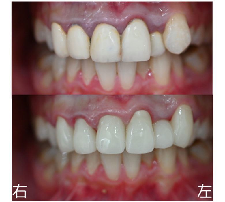 | 治療部位 | 上顎前歯6本のセラミック治療 (上顎両側切歯再根幹治療) |
